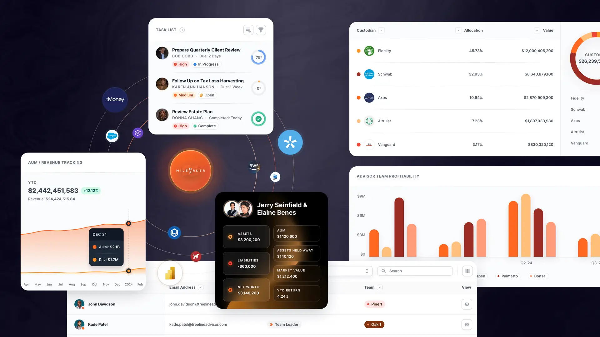 Mackrill and Milemarker use the phrase “synthesizing data” when discussing how the platform makes data available across an advisory firm’s many systems.