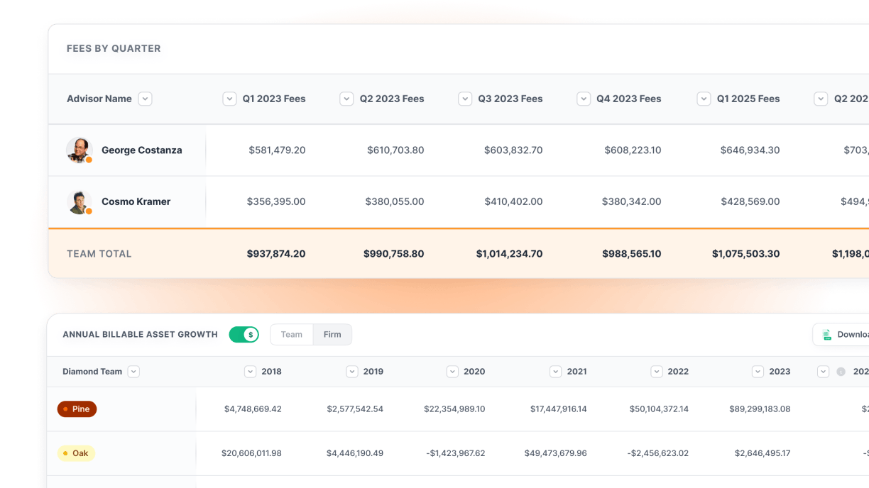 Pattern recognition for emerging risks, trend analysis across advisor populations, and predictive indicators for potential issues.