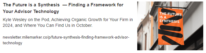 I wanted to share this year’s top 5 most popular editions of The Connected Advisor Newsletter this year. If you missed any of them, or just want to give them another read, I’d love to hear your thoughts. As always, all replies to this email go directly to my inbox.