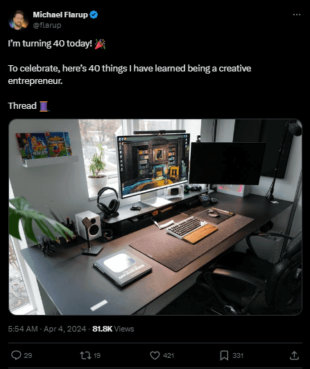 For his 40th birthday, Michael shared 40 things that he has learned building a wide array of things for the internet — from Thermodo, to games to some of the most definitive works on app icon design.