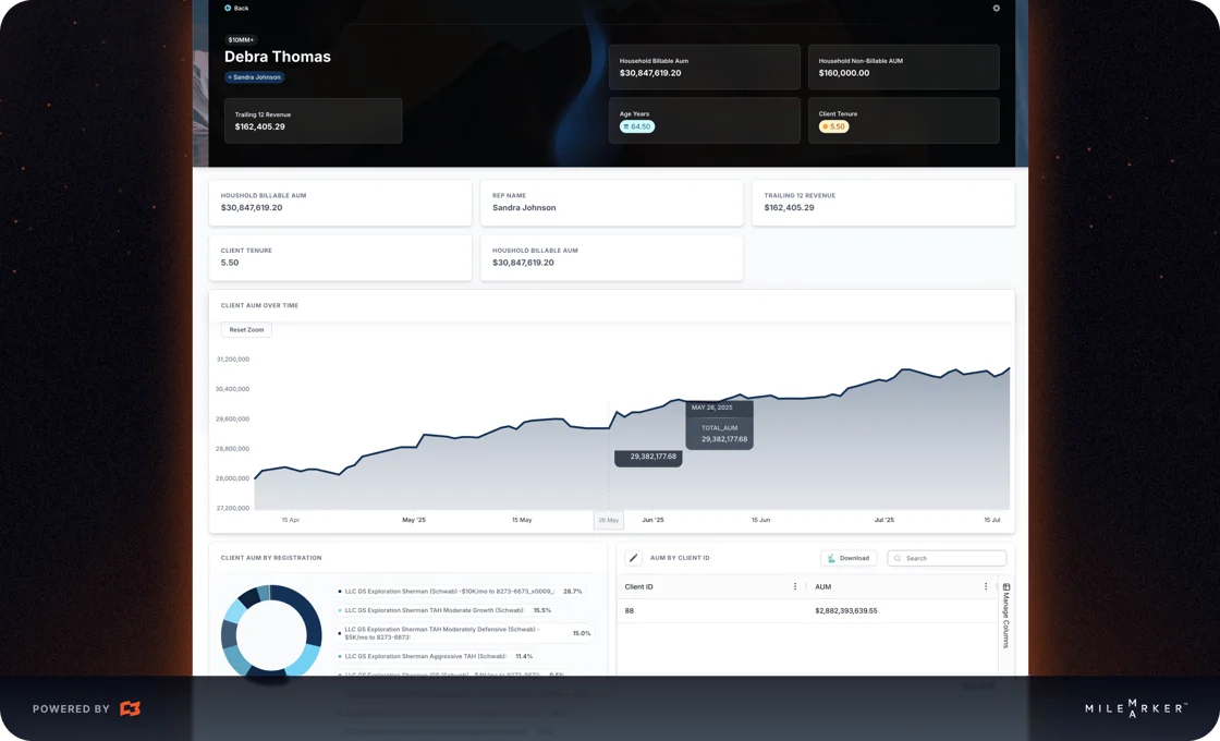 Client summary screen? Done. Prospect preview? Easy. Advisor overview? Built.