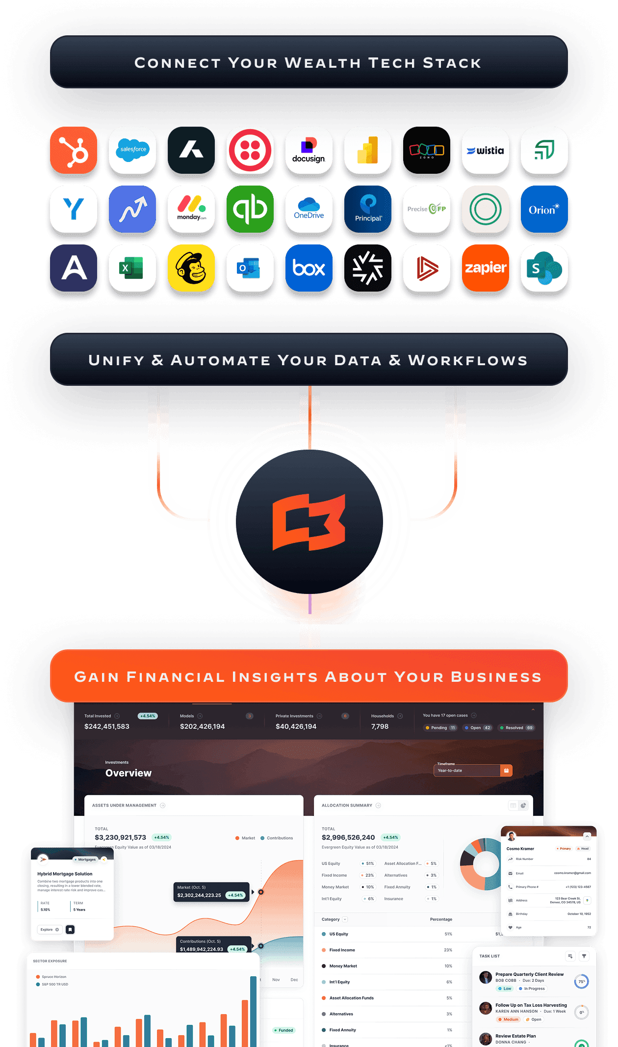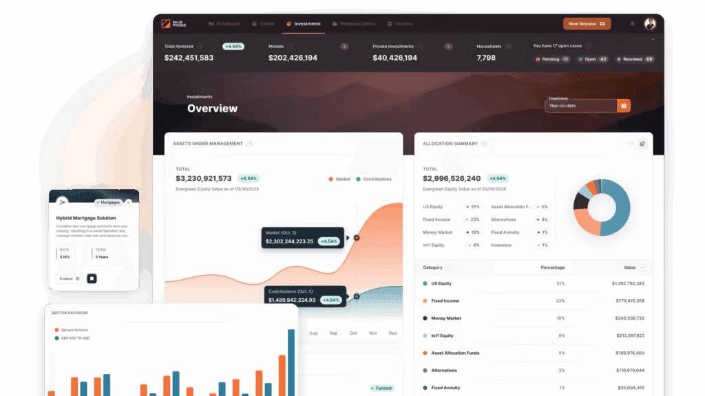 Combine public markets, alternatives, insurance, 401(k)s, and SMAs in one streamlined experience. Your advisors see everything. Your ops team manages one system.